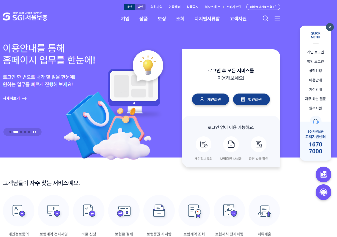 - 금융 보증 서비스 대출을 받을 때 필요한 보증을 제공하는 금융 보증 서비스를 제공합니다. 보증인 없이 대출을 받을 수 없었던 개인 및 기업들이 서울보증보험을 통해 대출 보증을 받을 수 있습니다.